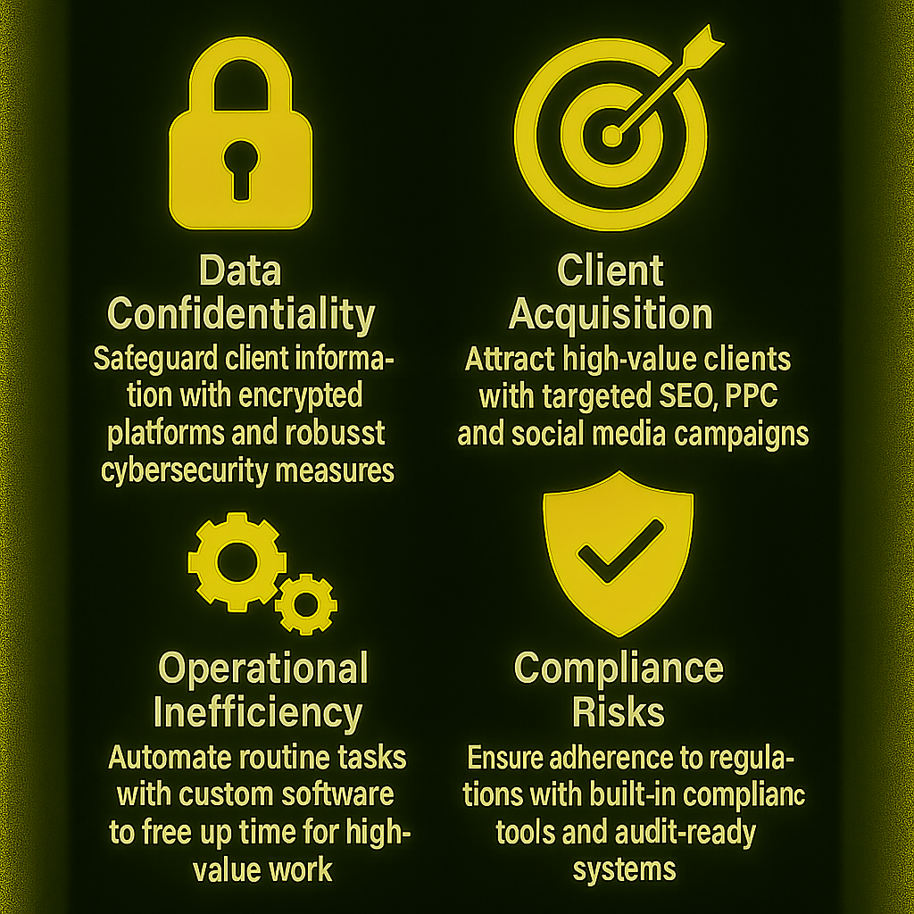 The legal and professional services sector is embracing digital tools to improve productivity, ensure compliance, and attract clients. Firms face challenges such as data security, client acquisition, and operational complexity. NatalizIQ’s solutions address these pain points by providing: